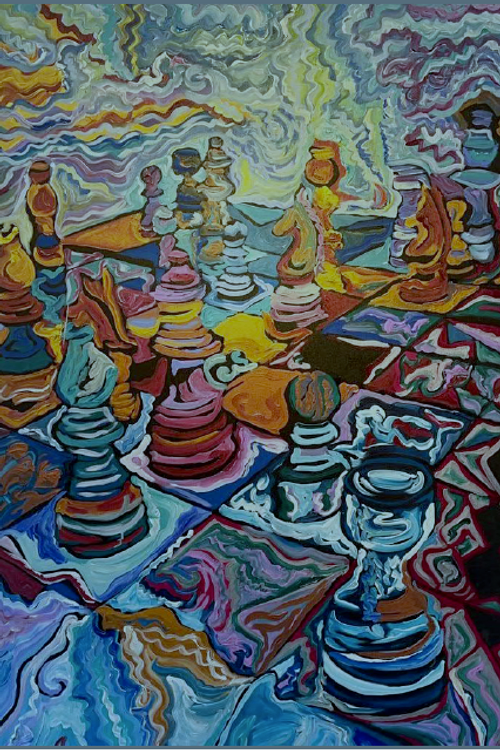 Esta pintura nos confronta con una imagen de intensa carga simbólica y una estética profundamente inquietante. El rostro femenino, ejecutado con precisión fotorrealista, se encuentra fragmentado por una serie de patrones geométricos, espirales y texturas que remiten tanto a lenguajes ancestrales como a circuitos modernos. Esta dicotomía evoca un diálogo entre lo orgánico y lo tecnológico, lo eterno y lo efímero. La piel, pintada con motivos que recuerdan a la iconografía tribal y a la ornamentación ritual, parece quebrarse o abrirse, revelando capas interiores más abstractas y compleja.